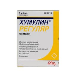Хумулин Регуляр 100 МЕ/мл раствор для инъекций картридж 3 мл 5 шт