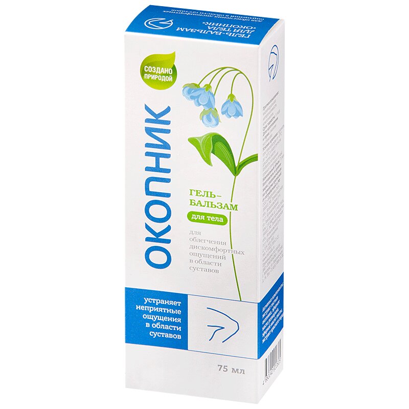 В составе геля-бальзама присутствуют два активных компонента, способных оказывать лечебное действие на воспалённые суставы и ткани – экстракт окопника и хондроитин. Экстракт окопника способствует уменьшению воспаления в суставах, спине, пояснице, мышцах, и связках, ускоряет восстановление поврежденных тканей при переломах, растяжениях связок, ушибах. Хондроитин, основное вещество внутрисуставной жидкости, участвует в построении вещества хрящевой ткани, играет роль смазки суставной поверхности. Комплекс эфирных масел успокаивает и согревает ткани.