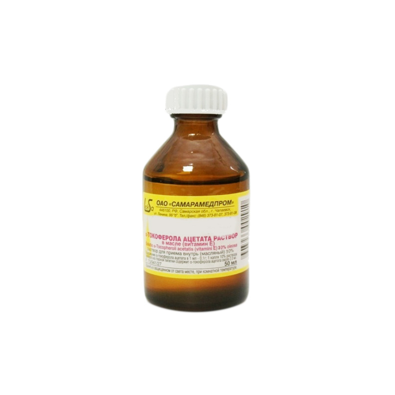 Альфа-Токоферола ацетат Витамин Е 300 мг/мл раствор маслянный 50 мл 1 шт Самарамедпром