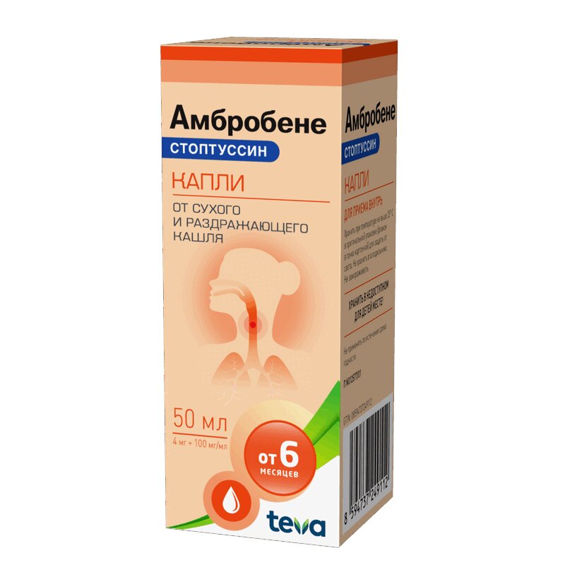 Инструкция по применению Амбробене Стоптуссин 4 мг/мл+100 мг/мл капли для приема внутрь 50 мл