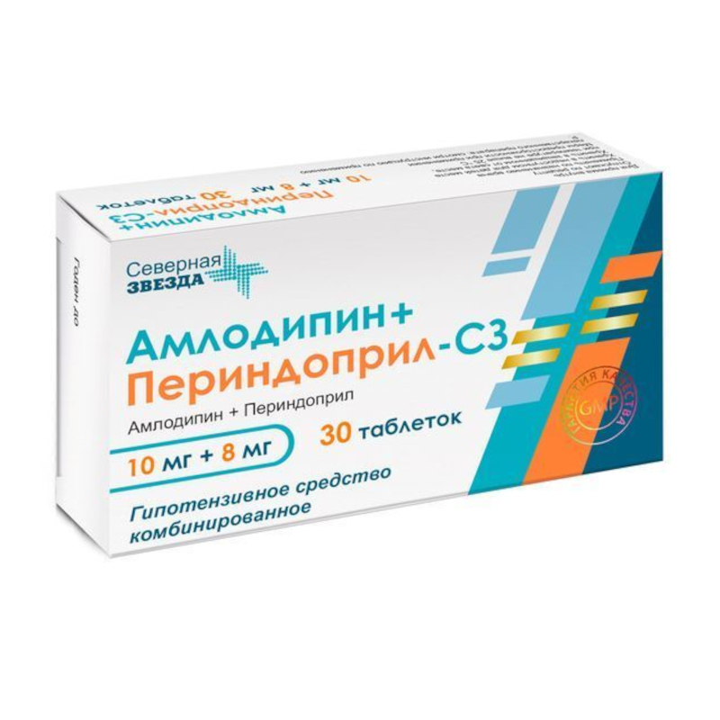 Величина абсорбции амлодипина и периндоприла при применении лекарственного препарата Амлодипин + Периндоприл-СЗ существенно не отличается от таковой при применении монопрепаратов.