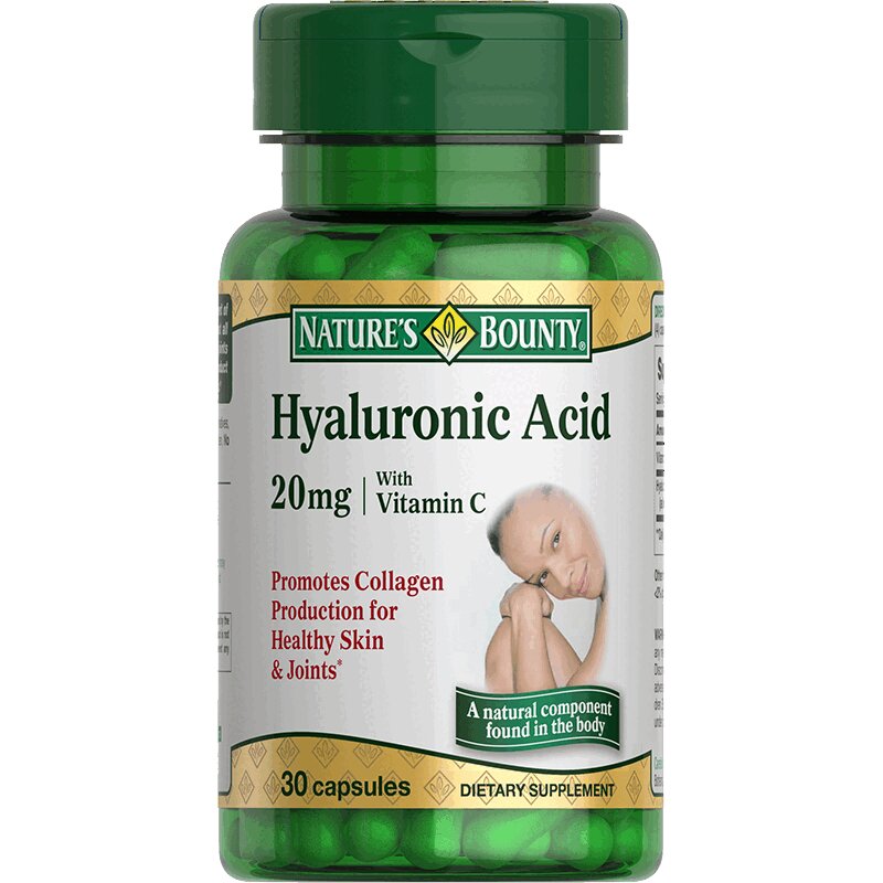 гиалуроновая кислота 150 мг (высокомолекулярная и низкомолекулярная),компоненты капсулы (пищевые добавки): гидроксипропилметилцеллюлоза (загуститель), диоксид титана (краситель); целлюлоза микрокристаллическая (носитель); стеарат магния и диоксид кремния аморфный (агенты антислеживающие).