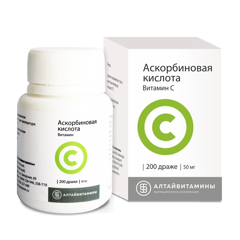 Аскорбиновая кислота 50 мг драже 200 шт Алтайвитамины