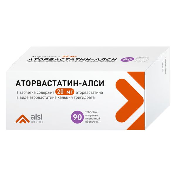 Аторвастатин-АЛСИ 20 мг таблетки покрытые пленочной оболочкой 90 шт