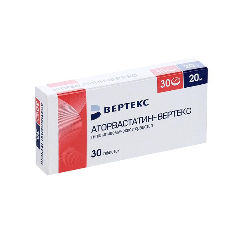 Аторвастатин-ВЕРТЕКС 20 мг таблетки 30 шт