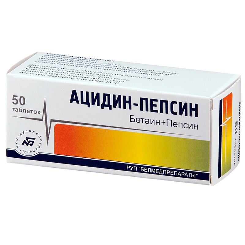 | бетаина гидрохлорид (ацидин) | 200 мг |