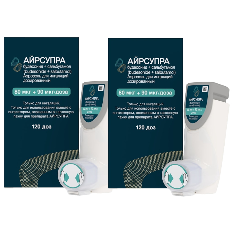 Комбинированный препарат, содержит ГКС и селективный бета2-адреномиметик.