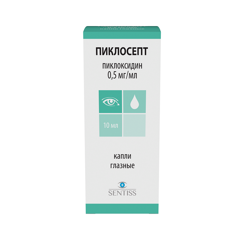 Противомикробное средство для применения в офтальмологии, производное бигуанидов. Оказывает антисептическое действие. Пиклоксидин активен в отношении Staphylococcus aureus, Streptococcus faecalis, Escherichia coli, Eberthella typhosa, Klebsiella pneumoniae, Proteus vulgaris, Shigella dysenteriae, Bacillus subtilis, Chlamydia trachomatis, некоторых вирусов и грибов.