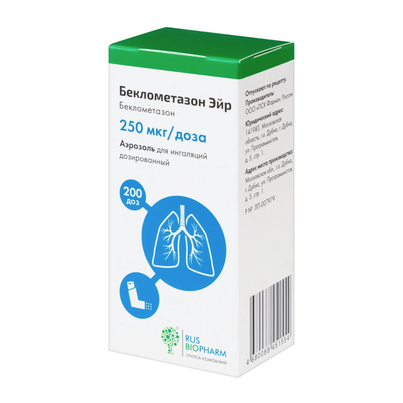 ГКС для ингаляционного применения. Беклометазон в форме дипропионата является пролекарством и обладает слабой тропностью к глюкокортикоидным рецепторам. Под действием эстераз превращается в активный метаболит – беклометазона-17-монопропионат, который оказывает выраженный местный противовоспалительный эффект за счет снижения образования субстанции хемотаксиса (влияние на аллергические реакции замедленного типа). Подавляя продукцию метаболитов арахидоновой кислоты и снижая выделение из тучных клеток медиаторов воспаления, тормозит развитие аллергической реакции немедленного типа.