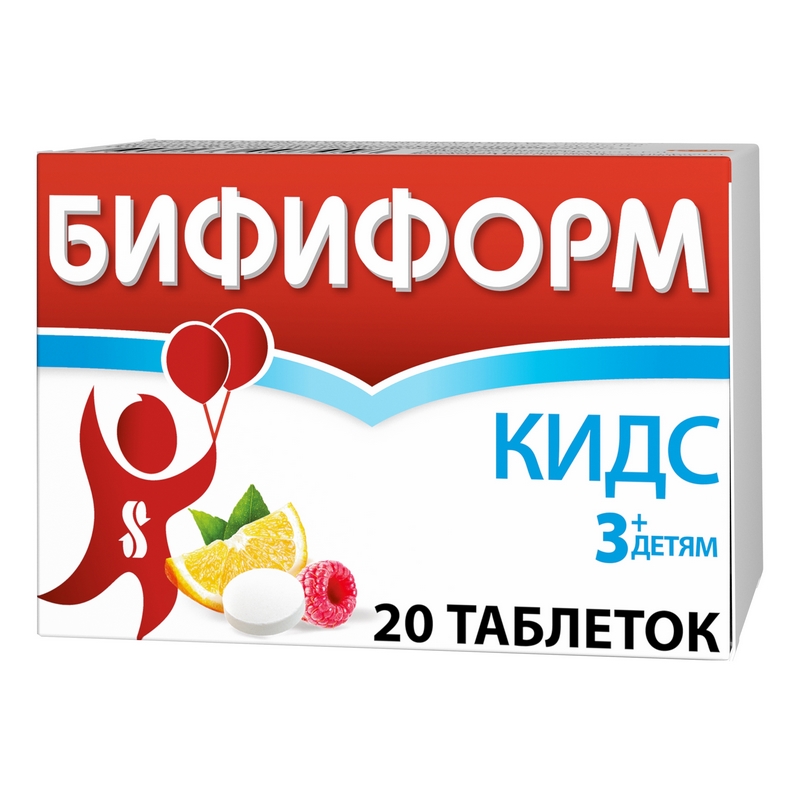 Инструкция по применению Бифиформ Кидс таблетки 625 мг Апельсин-Малина 20 шт