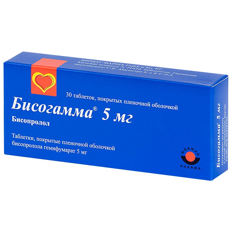 | бисопролол (в форме бисопролола гемифумарата) | 5 мг |