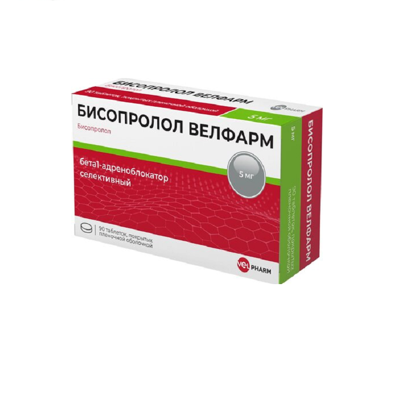 Бисопролол Велфарм 5 мг таблетки покрытые пленочной оболочкой 90 шт