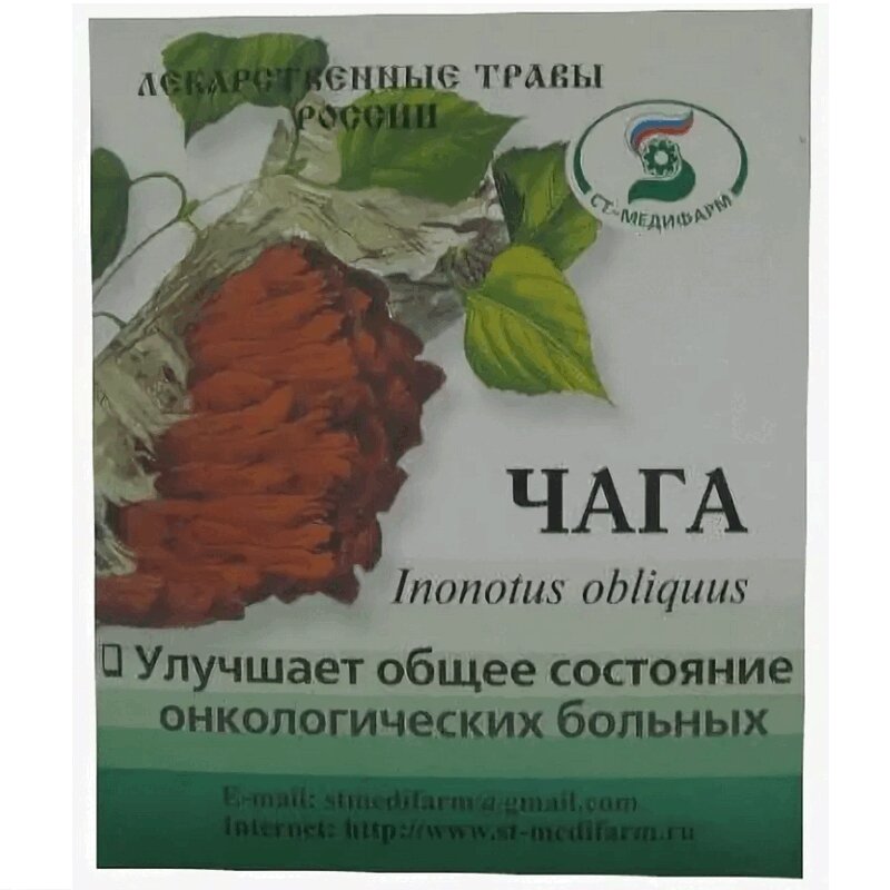 Средство из фитопатогенного гриба инонотуса скошенного (трутовик косотрубчатый, трутовик косой), развивающегося в форме наростов на стволах березы. Основными действующими веществами являются пигменты, образующие хромогенный полифенолкарбоновый комплекс (20%) в сочетании с полисахаридами (6-8%), агарициновой и гуминоподобной чаговыми кислотами. Тонизирующее влияние на ЦНС и иммуномодулирующие свойства обеспечивают повышение устойчивости организма к гипоксии и другим неблагоприятным воздействиям. Наличие меди, марганца, кобальта обеспечивает стимулирующее влияние на кроветворение, особенно на лейкопоэз. Препараты березового гриба обладают гастропротекторным действием, нормализуют функции пищеварительных желез. Повышение функциональной активности иммунной системы, особенно функции естественных клеток-киллеров, определяет, по-видимому, противоопухолевые свойства березового гриба.