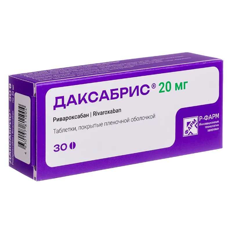 Для предупреждения образования тромбов в сосудах головного мозга (инсульта) и других кровеносных сосудах (системной тромбоэмболии) рекомендуемая доза ‒ одна таблетка препарата ДАКСАБРИС® 20 мг один раз в сутки.