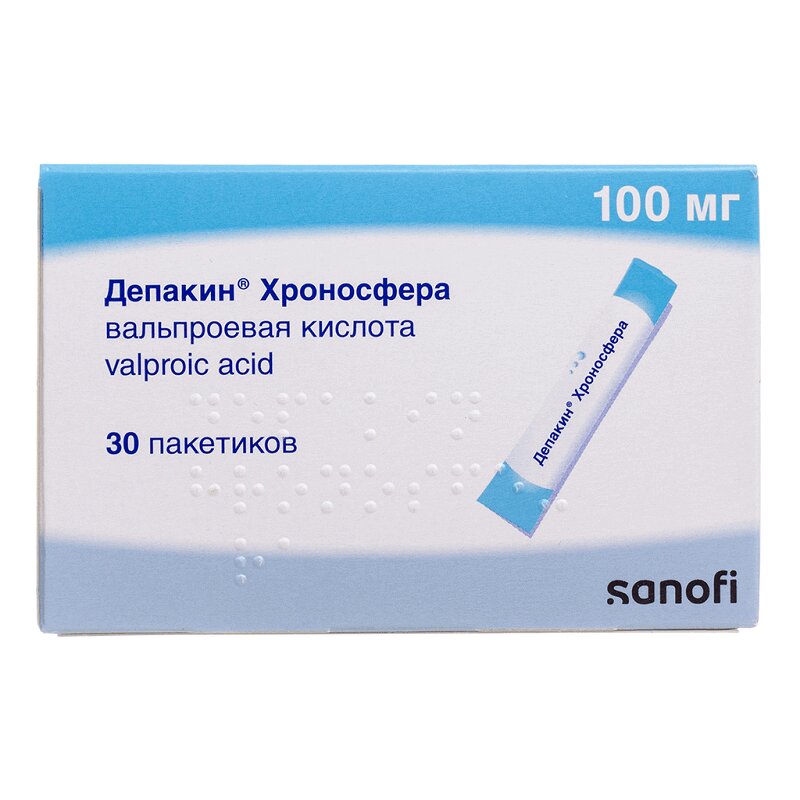 Депакин® Хроносфера представляет собой гранулы с пролонгированным высвобождением, обеспечивающие более равномерные концентрации вальпроевой кислоты в крови и, соответственно, более равномерное в течение суток ее распределение в тканях.