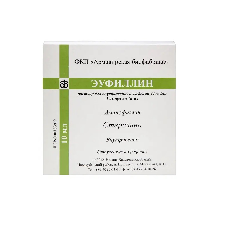 Бронходилатирующие свойства аминофиллина проявляются при его концентрации в крови 10–20 мкг/мл. Концентрация свыше 20 мг/мл является токсической. Возбуждающий эффект на дыхательный центр реализуется при более низком содержании препарата в крови — 5–10 мкг/мл.