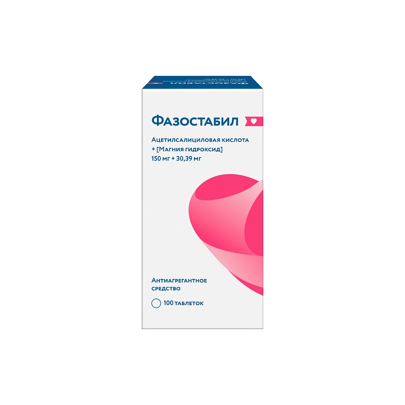Профилактика тромботических осложнений после операций и инвазивных вмешательств на сосудах (таких, как аортокоронарное шунтирование, эндартерэктомия сонных артерий, артериовенозное шунтирование, ангиопластика и стентирование коронарных артерий, ангиопластика сонных артерий). 1 таблетка препарата Фазостабил, содержащая АСК в дозе 75 - 150 мг, 1 раз в сутки.