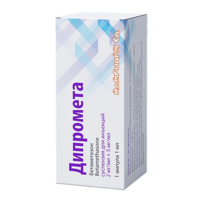 1 мл суспензии для инъекций содержит:Бетаметазона дипропионат 6,43 мг, эквивалентно бетаметазону 5 мг Бетаметазона натрия фосфат 2,63 мг, эквивалентно бетаметазону 2 мг Вспомогательные вещества: динатрия фосфат дигидрат 2,50 мг, натрия хлорид 5,00 мг, динатрия эдетат 0,10 мг, полисорбат 80 0,50 мг, бензиловый спирт 9,00 мг, метилпарагидроксибензоат 1,30 мг, пропилпарагидроксибензоат 0,20 мг, кроскармеллоза натрия 5,00 мг, макрогол (полиэтиленгликоль) 20,00 мг, хлористоводородной кислоты раствор 1,0 М q.s., вода для инъекций до 1,00 мл