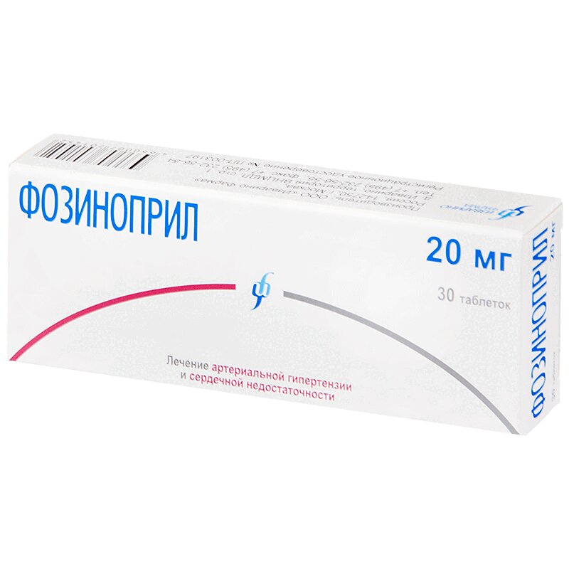 Инструкция по применению Фозиноприл 20 мг таблетки 30 шт