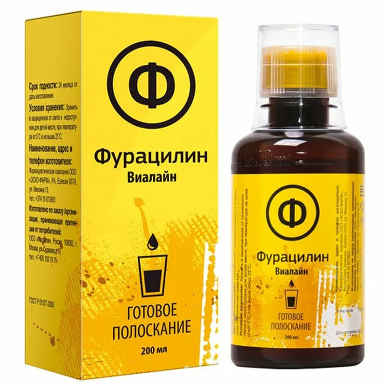 Спрей «Фурацилин Виалайн » - содержит Нитрофурал, жидкий экстракт чабреца и дубровника, является эффективным средством профилактики заболеваний полости рта. Основное назначение раствора – удаление болезнетворных микроорганизмов и гнойных налетов. Оказывает антисептическое и противовоспалительное действие.