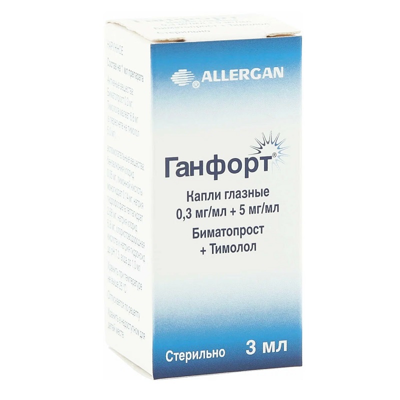 Ганфорт - комбинированный лекарственный препарат, входящие в его состав биматопрост и тимолол снижают внутриглазное давление (ВГД) за счет сочетанного взаимодействия, приводя к значительно более выраженному гипотензивному эффекту по сравнению с эффектом каждого из компонентов в отдельности.