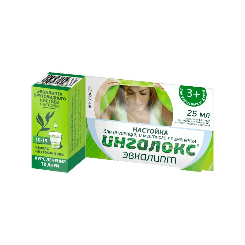1 фл. настойка листьев эвкалипта прутовидного (200 г растительного сырья на 1 л настойки) 100 мл