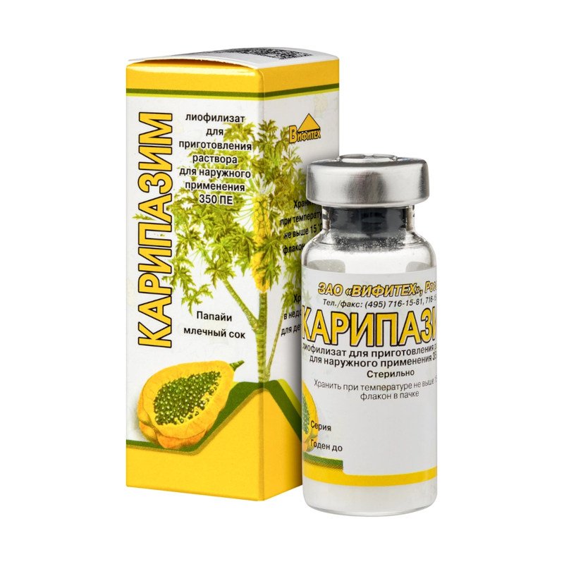 Карипазим 350 ПЕ лиофилизат для приготовления раствора для наружного применения 10 шт