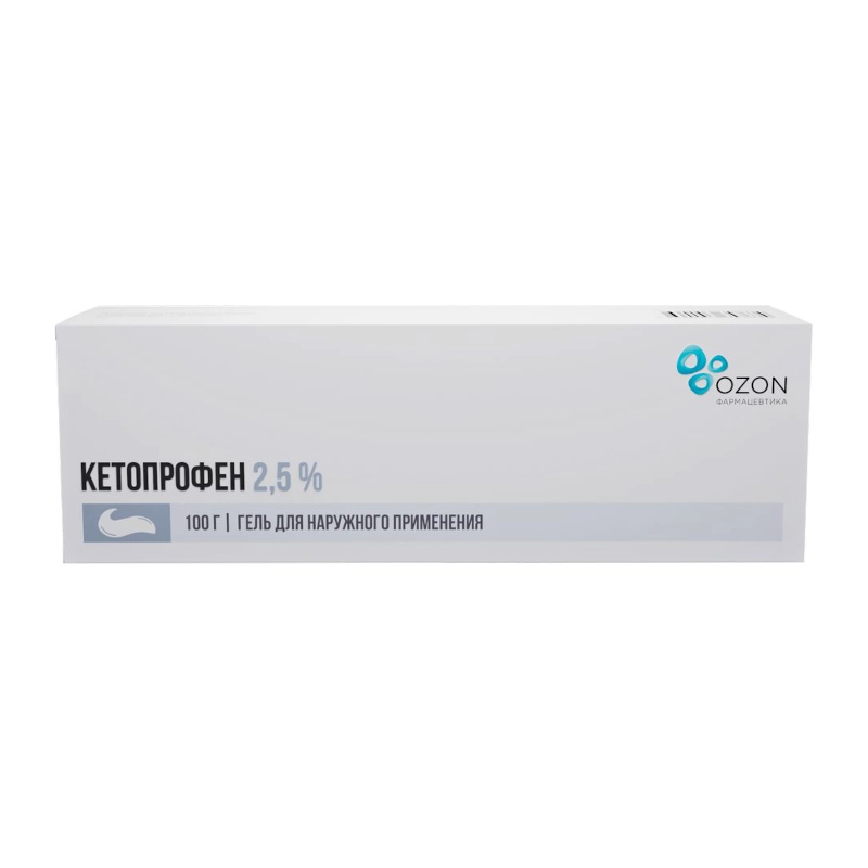 Действующее вещество: кетопрофен - 2,5 г.