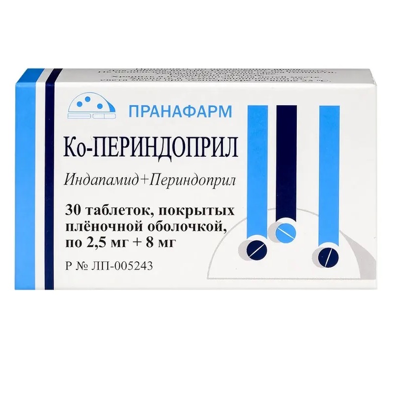 Инструкция по применению Ко-Периндоприл таблетки 2,5 мг+8 мг 30 шт