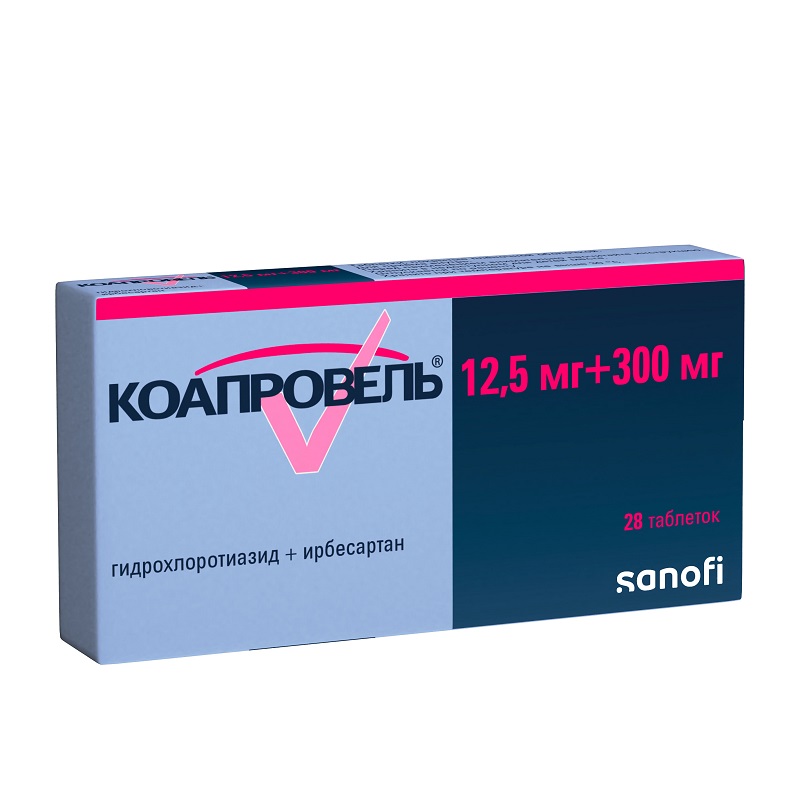 Коапровель® назначают пациентам, у которых АД недостаточно контролируется ирбесартаном или гидрохлоротиазидом в монотерапии.