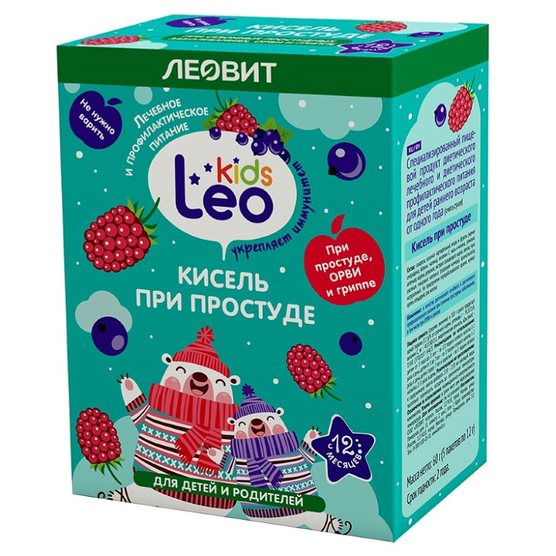 В основе каждого киселя для детей от года Leo Kids сбор лекарственных трав, безопасность и эффективность которого доказаны клинически. Кисель создан с учетом особенностей детского организма и возрастных потребностей. Продукт разработан российскими специалистами в области диетологии и нутрициологии и рекомендован педиатрами России.