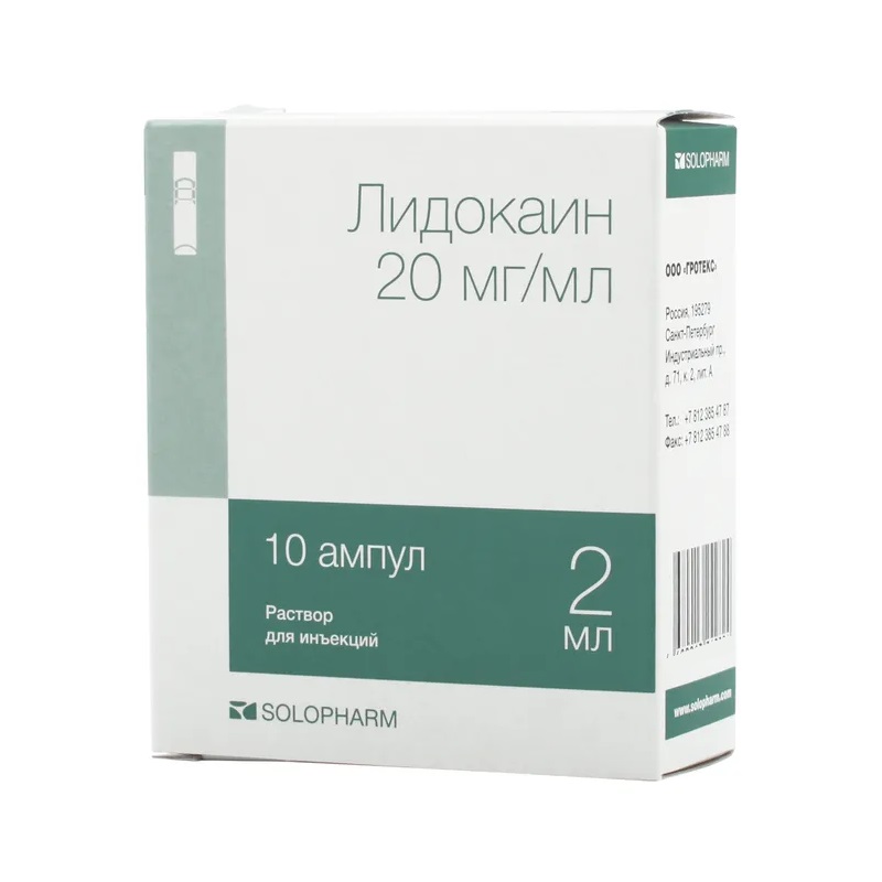 Местный анестетик амидного типа, короткого действия. В основе его механизма действия лежит уменьшение проницаемости мембраны нейрона для ионов натрия. В результате этого снижается скорость деполяризации и повышается порог возбуждения, приводя к обратимому местному онемению. Лидокаин применяется в целях достижения проводниковой анестезии в различных участках тела и контроля аритмии. Обладает быстрым началом действия (около 1 мин после в/в введения и 15 мин после в/м введения), быстро распространяется в окружающие ткани. Действие продолжается 10-20 мин после в/м введения и около 60-90 мин после в/в введения.