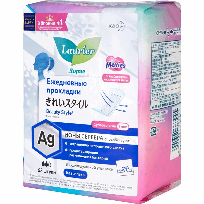 Ежедневные прокладки Laurier Beauty Style Fresh с ионами серебра с ароматом луговых трав - Гигиенические изделия из нетканного гипоаллергенного материала с ароматом луговых трав