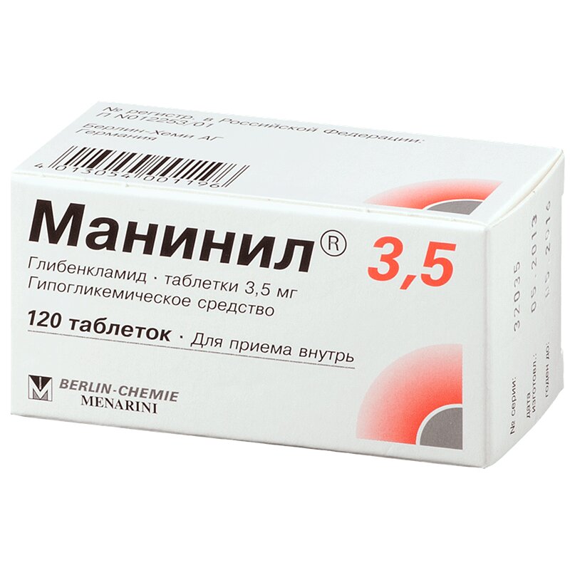 Если суточная доза глибенкламида превышает 3 таб. препарата Манинил® 1.75, рекомендуется использовать препарат Манинил® 3.5.