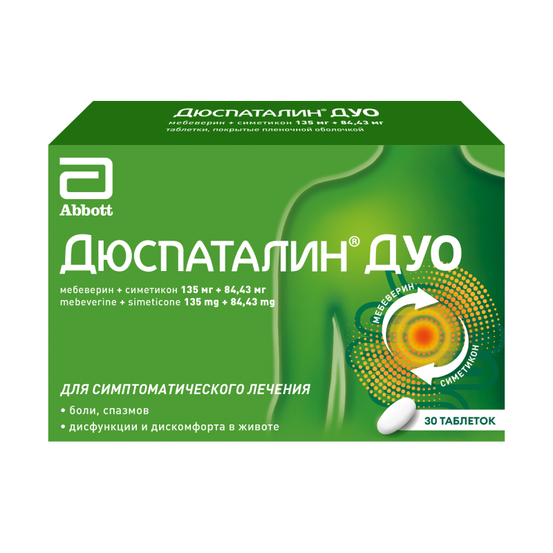 Симптоматическое лечение боли, спазмов, дисфункции и дискомфорта в области кишечника, связанных с синдромом раздраженного кишечника (симптомы могут включать боль в области живота, спазмы, ощущение вздутия и метеоризм, изменение частоты стула (диарея, запор или чередование диареи и запоров), изменение консистенции стула).