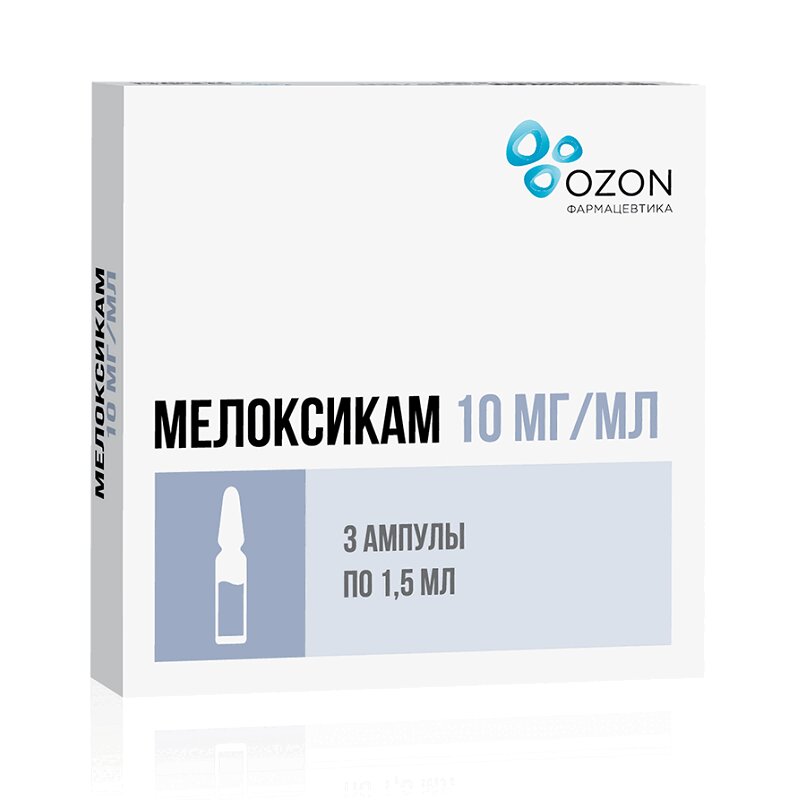 Раствор для в/м введения зеленовато-желтого цвета, прозрачный или слегка опалесцирующий. 1 мл мелоксикам 10 мг Вспомогательные вещества: глицин - 5 мг, тетрагидрофурфурил макрогол (гликофурол) - 100 мг, меглюмин - 6.25 мг, натрия хлорид - 3 мг, натрия гидроксида раствор 1М - до рН 8.2 - 8.9, полоксамер 188 - 50 мг, вода д/и - до 1 мл. 1.5 мл - ампулы из бесцветного стекла типа I.3 шт. - ампулы из бесцветного стекла типа I (1) - упаковки ячейковые контурные.3 шт. - ампулы из бесцветного стекла типа I (2) - упаковки ячейковые контурные.3 шт. - ампулы из бесцветного стекла типа I (4) - упаковки ячейковые контурные.5 шт. - ампулы из бесцветного стекла типа I (1) - упаковки ячейковые контурные.5 шт. - ампулы из бесцветного стекла типа I (2) - упаковки ячейковые контурные.5 шт. - ампулы из бесцветного стекла типа I (4) - упаковки ячейковые контурные.