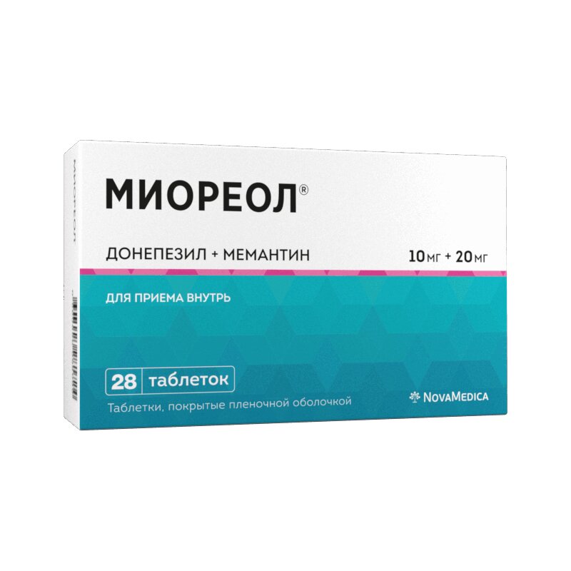 Рекомендуемая начальная доза составляет Донепезил 10 мг+Мемантин 5 мг (одна таблетка препарата Миореол® 10 мг+5 мг).