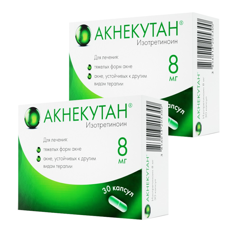 Высокая биодоступность препарата Акнекутан® обусловлена большой долей растворенного изотретиноина в препарате и может увеличиваться при условии приема препарата с пищей. У больных с акне Cmax в равновесном состоянии после приема изотретиноина в дозе 80 мг натощак составляли 310 нг/мл (диапазон 188-473 нг/мл) и достигались через 2-4 ч. Концентрация изотретиноина в плазме в 1.7 раз выше, чем в крови, вследствие плохого проникновения изотретиноина в эритроциты.