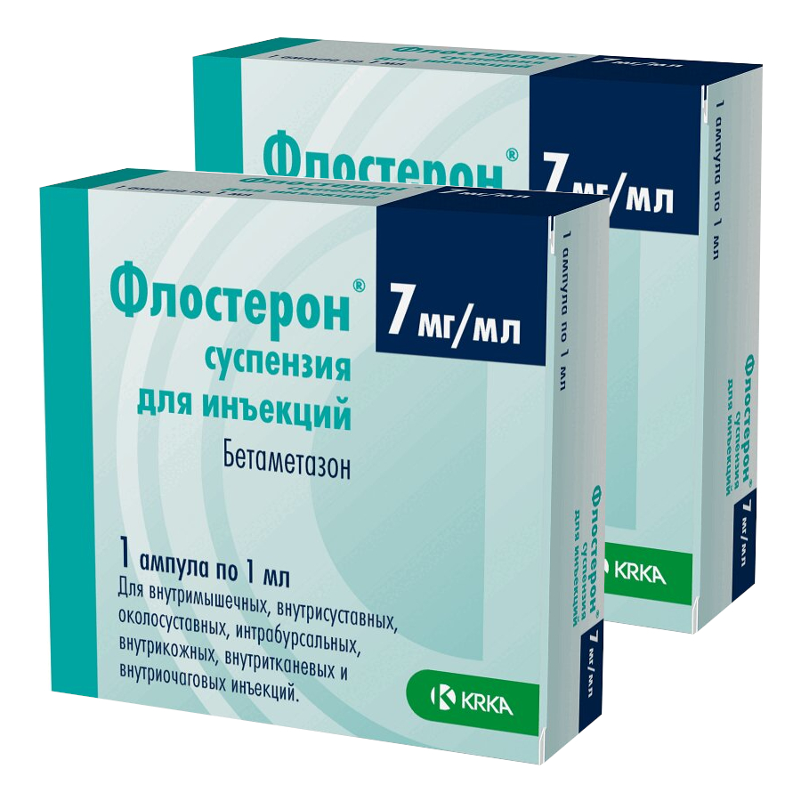 1 мл суспензии для инъекций содержит:Бетаметазона дипропионат 6,43 мг, эквивалентно бетаметазону 5 мг Бетаметазона натрия фосфат 2,63 мг, эквивалентно бетаметазону 2 мг Вспомогательные вещества: динатрия фосфат дигидрат 2,50 мг, натрия хлорид 5,00 мг, динатрия эдетат 0,10 мг, полисорбат 80 0,50 мг, бензиловый спирт 9,00 мг, метилпарагидроксибензоат 1,30 мг, пропилпарагидроксибензоат 0,20 мг, кроскармеллоза натрия 5,00 мг, макрогол (полиэтиленгликоль) 20,00 мг, хлористоводородной кислоты раствор 1,0 М q.s., вода для инъекций до 1,00 мл