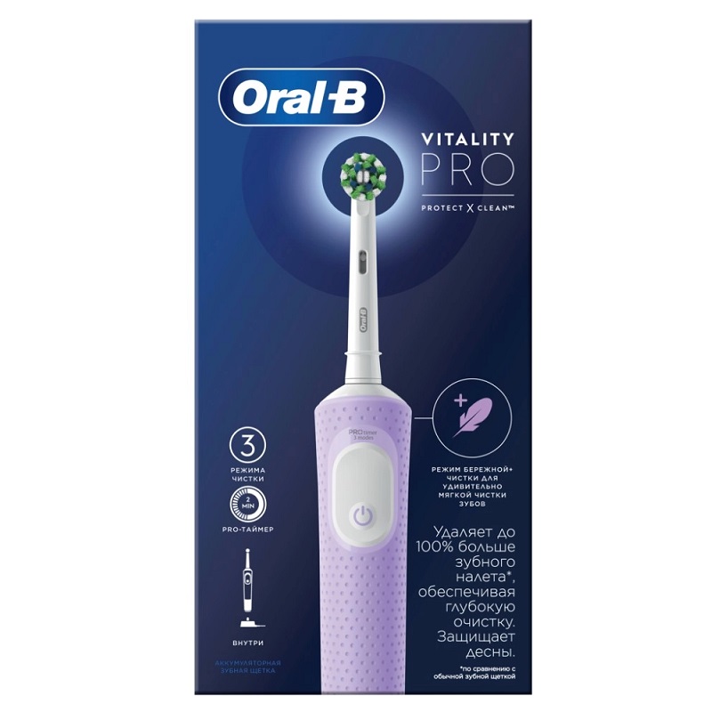 Электрическая зубная щетка Oral-B PRO 500 удаляет до 100% больше зубного налета, чем мануальная зубная щетка, а также улучшает состояние десен. Благодаря профессионально разработанному дизайну насадки CrossAction, щетинки, расположенные под углом, окружают каждый зуб, бережно удаляя налет даже из труднодоступных мест и вдоль линии десны.