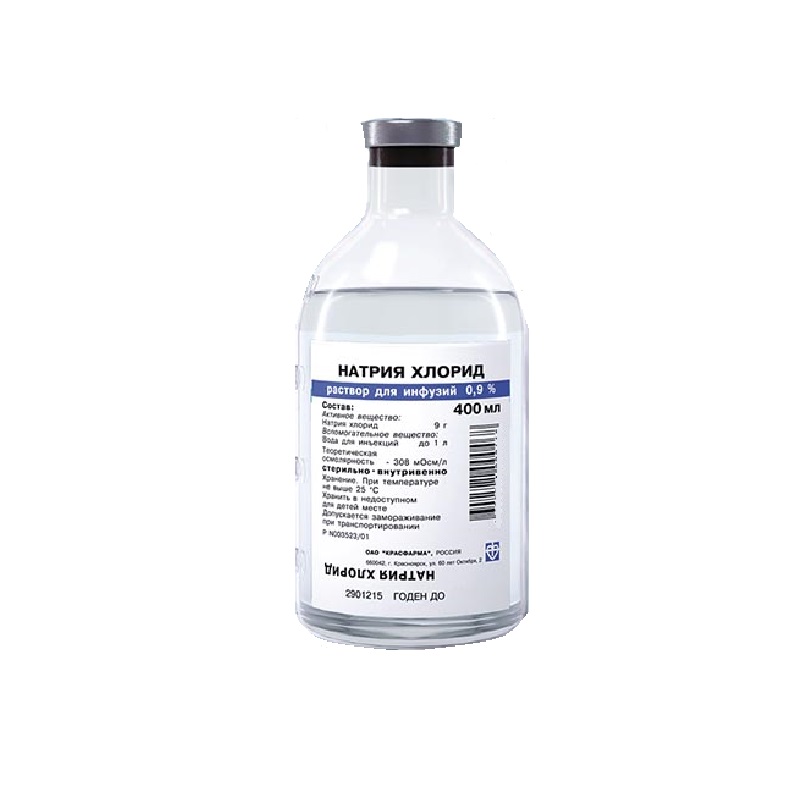 Раствор натрия хлорида 0,9% изотоничен плазме крови человека и поэтому быстро выводится из сосудистого русла, лишь временно увеличивая объем циркулирующей жидкости. Гипертонические растворы (3–5–10%) применяются в/в и наружно. При наружной аппликации они способствуют выделению гноя, проявляют противомикробную активность, при в/в введении — усиливают диурез и восполняют дефицит ионов натрия и хлора.