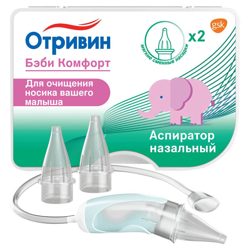 Отривин Бэби Комфорт аспиратор назальный с 2 сменными насадками 1 шт