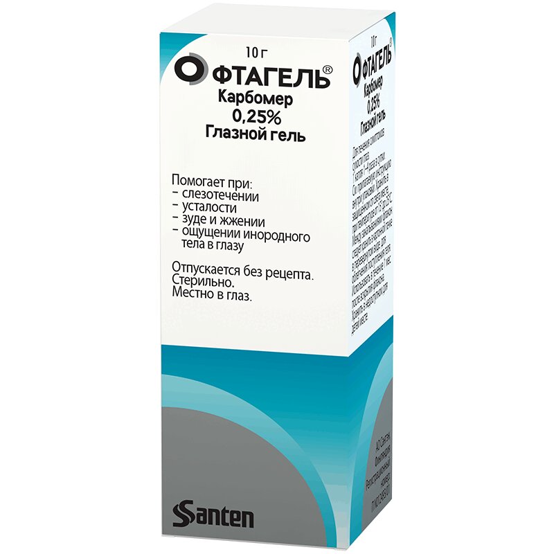 Препарат для увлажнения и защиты роговицы. Офтагель® содержит карбомер, представляющий собой высокомолекулярный карбоксивинилполимер (полиакрилат). Карбомер увеличивает вязкость слезы, образуя защитную увлажняющую пленку на поверхности роговицы, утолщает муциновый и водный слои слезной пленки. Офтагель® уменьшает симптомы раздражения, связанные с синдромом сухого глаза, который включает компенсаторное слезотечение, зуд, жжение, ощущение инородного тела в глазу и зрительное утомление.