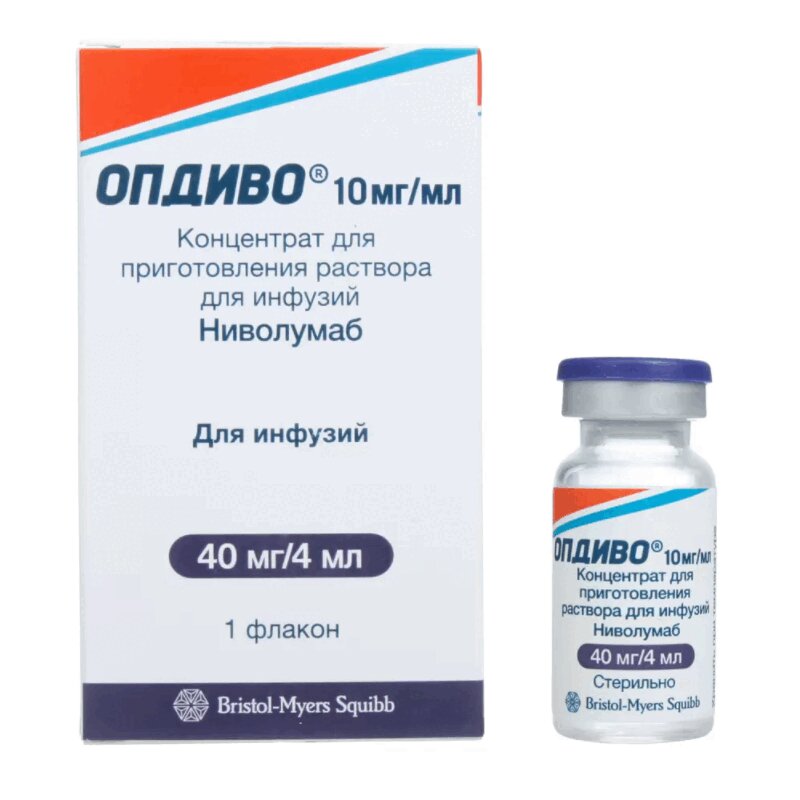 * Фасовка производится с учетом перезакладки в 0.7 мл, что необходимо для гарантии полного извлечения заявленной дозировки. Извлекаемое количество ниволумаба (объем раствора) в одном флаконе - 40 мг (4 мл).