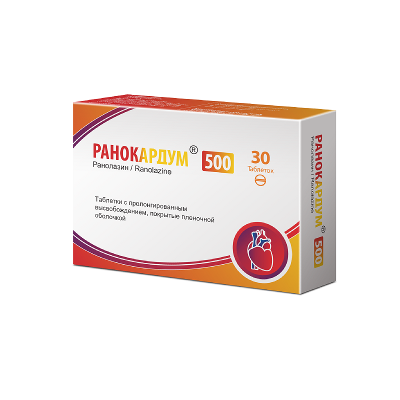 Ранокардум 500 мг таблетки покрытые пленочной оболочкой с пролонгированным высвобождением 30 шт