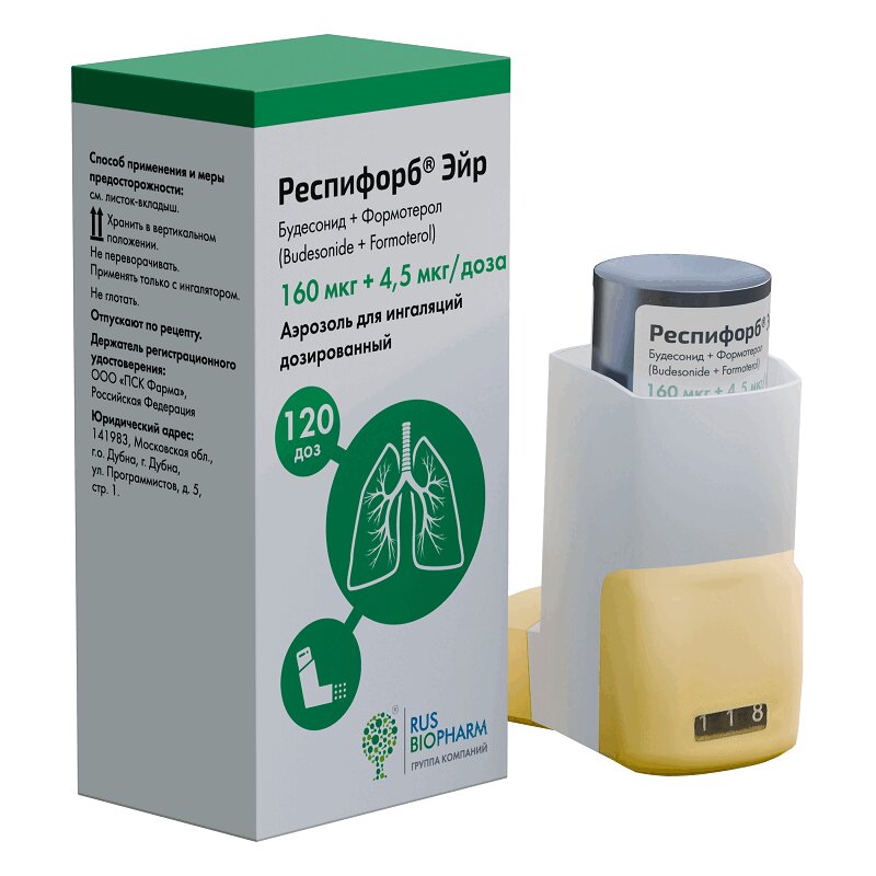 Респифорб Эйр аэрозоль дозируемый для ингаляций баллон (баллончик) 160 мкг+4,5 мкг/доза 120доз