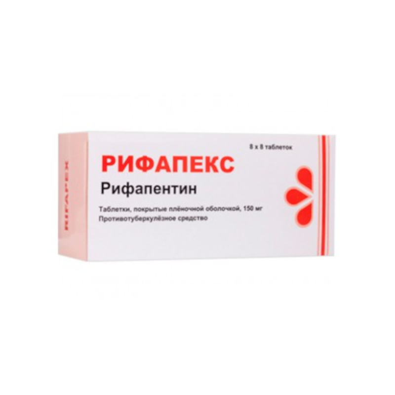 Биодоступность после приема одной дозы 600 мг составляет 70%. После приема 600 мг максимальная концентрация рифапентина в плазме достигается через 5-6 ч. Степень связывания с белками плазмы рифапентина и его активного метаболита 25-дезацетилрифапентина составляет 97.7 и 93.2 % соответственно. С мочой экскретируется 17% рифапентина и родственных соединений. Период полувыведения рифапентина составляет приблизительно 14-17 часов.