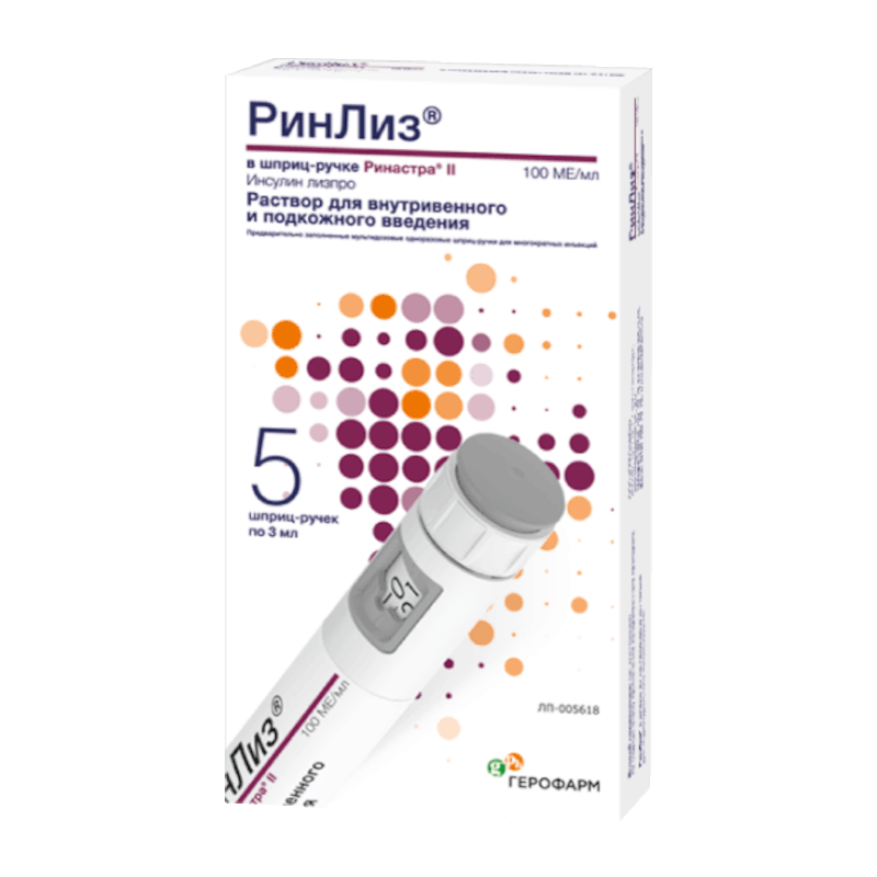 Аналог инсулина человеческого, отличается от него обратной последовательностью пролинового и лизинового аминокислотных остатков в положениях 28 и 29 B-цепи инсулина. По сравнению с препаратами инсулина короткого действия для инсулина лизпро характерно более быстрое начало и окончание эффекта, что обусловлено повышенной абсорбцией из подкожного депо за счет сохранения в растворе мономерной структуры молекул инсулина лизпро. Начало действия - через 15 мин после п/к введения, максимальное действие - между 0.5 ч и 2.5 ч; продолжительность действия - 3-4 ч.