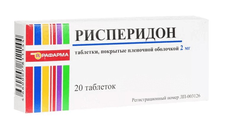 Таблетки, покрытые пленочной оболочкой белого или почти белого цвета, круглые, двояковыпуклые, с крестообразной риской на одной стороне; на поперечном разрезе - ядро белого или почти белого цвета. 1 таб. рисперидон 2 мг Вспомогательные вещества: лактозы моногидрат - 134.3 мг, целлюлоза микрокристаллическая - 12.7 мг, магния стеарат - 1 мг. Состав оболочки: опадрай II 85F28751 белый - 4 мг (поливиниловый спирт - 1.6 мг, титана диоксид - 1 мг, макрогол - 0.81 мг, тальк - 0.59 мг). 10 шт. - блистеры (1) - пачки картонные.10 шт. - блистеры (2) - пачки картонные.50 шт. - банки полимерные (1) - пачки картонные.100 шт. - банки полимерные (1) - пачки картонные.
