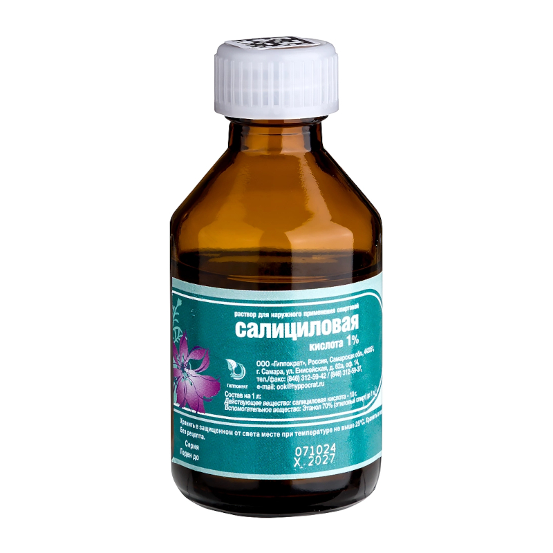 Раствор фармацевтически несовместим с резорцинолом (образует расплавляющиеся смеси) и цинка оксидом (нерастворимый цинка салицилат).